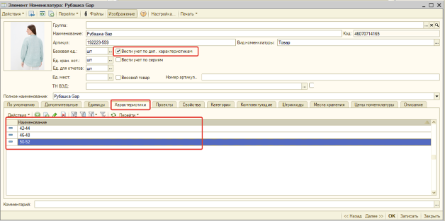 В 1С учет представлен как товарами, так и их характеристиками, т.е. «торговыми предложениями». Например, рубашка — это единая позиция номенклатуры, но имеет размеры, например 44, 46, 48.А сумка является уникальным товаром — потому, что она представлена только в одном цвете, в одном размере, выполнена из одного и того же материала, и никаких характеристик по ней заводить не нужно.